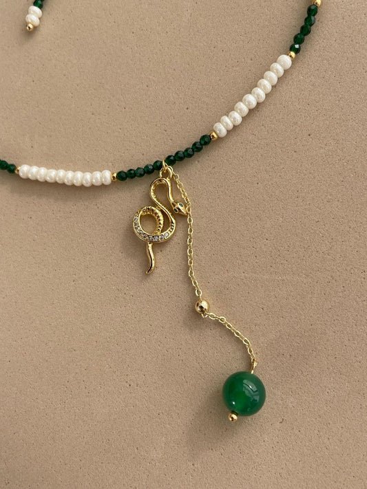 Браслет - подвес из гематита и хрустального жемчуга