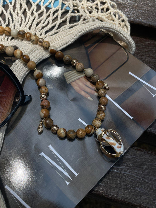 Колье из яшмы с ракушками