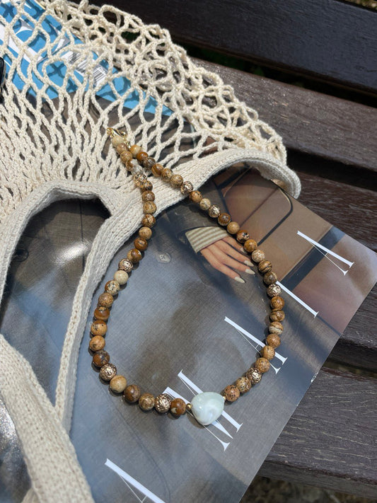 Колье из яшмы с перламутром