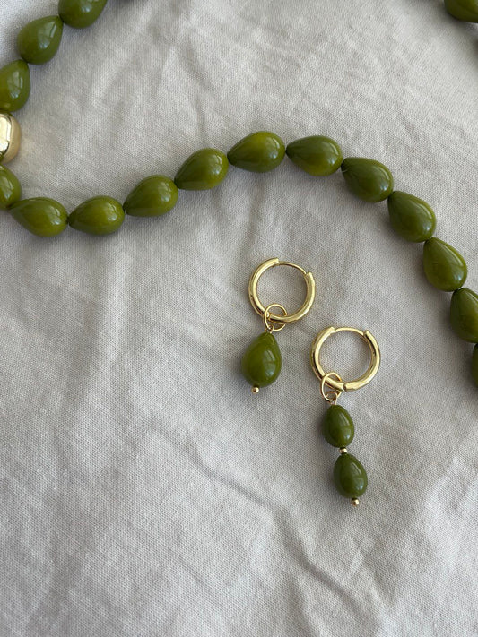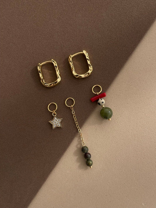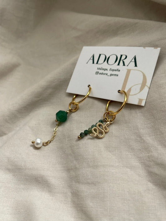Серьги - кольца с подвесками из изумруда, агата и жемчуга