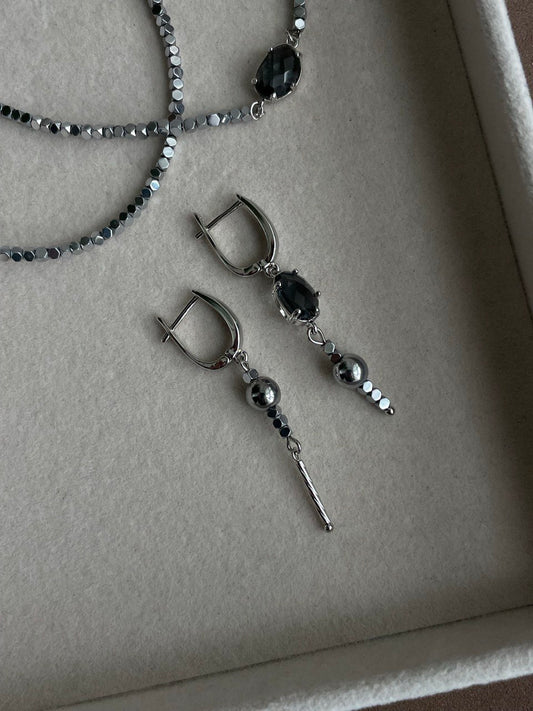 • Серьги - овалы с кварцем и гематитом