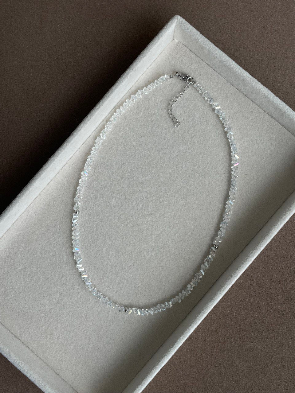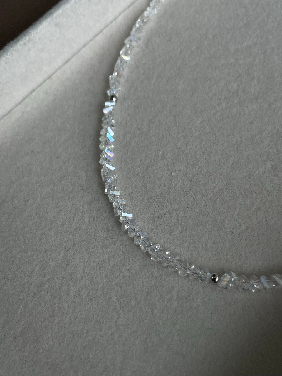 Нежное, сияющее колье из хрустальной крошки. Ручная работа.