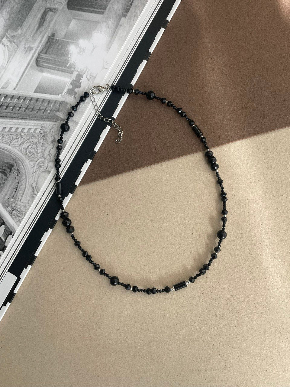 Тонкое колье из агата, обсидиана и шпинели. Ручная работа.