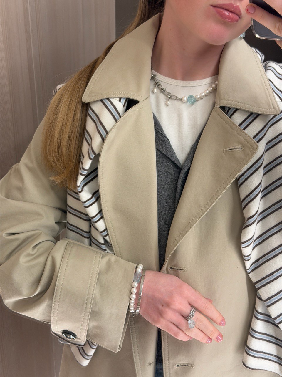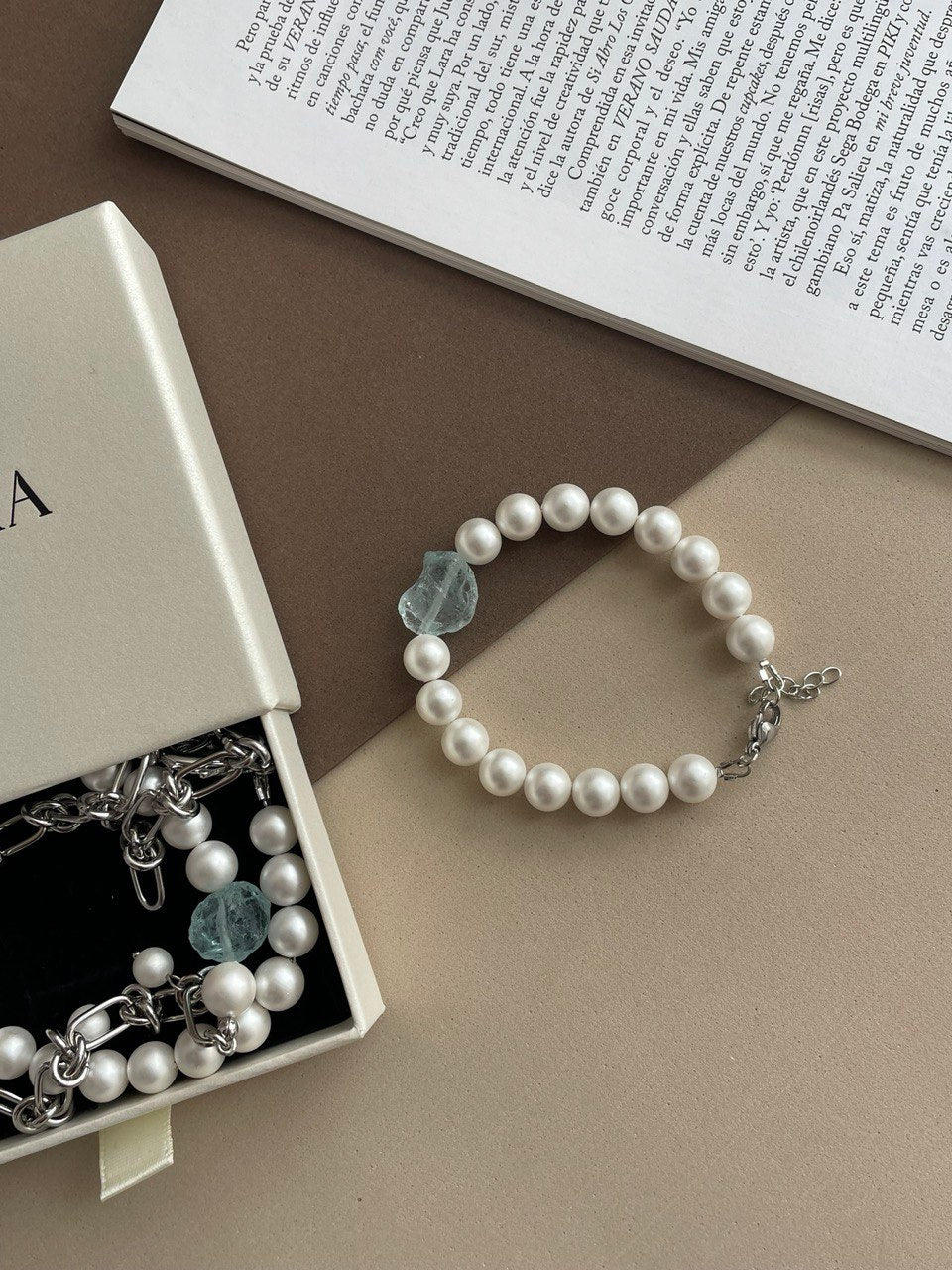 Браслет из жемчуга Майорка с аквакварцем.