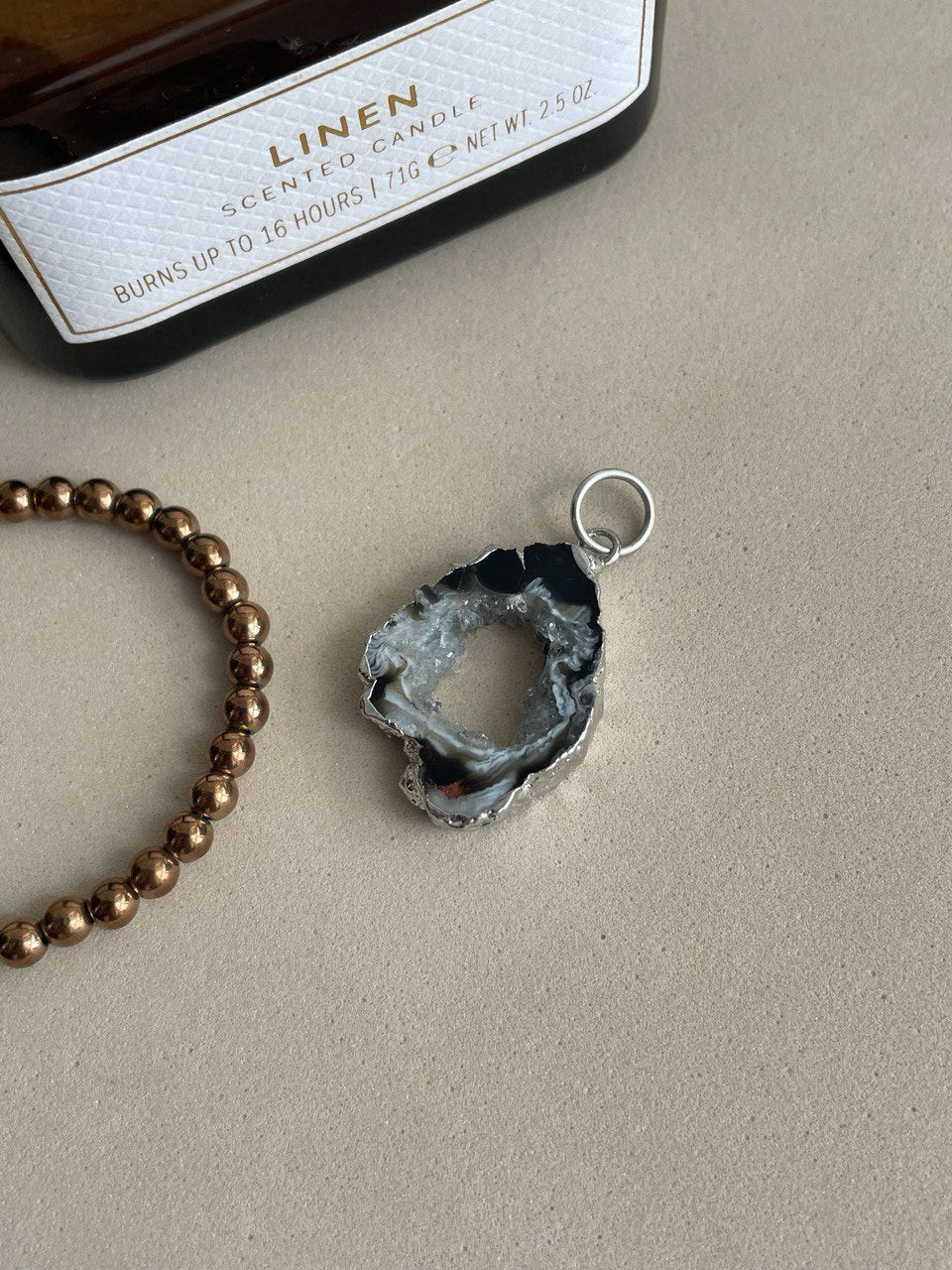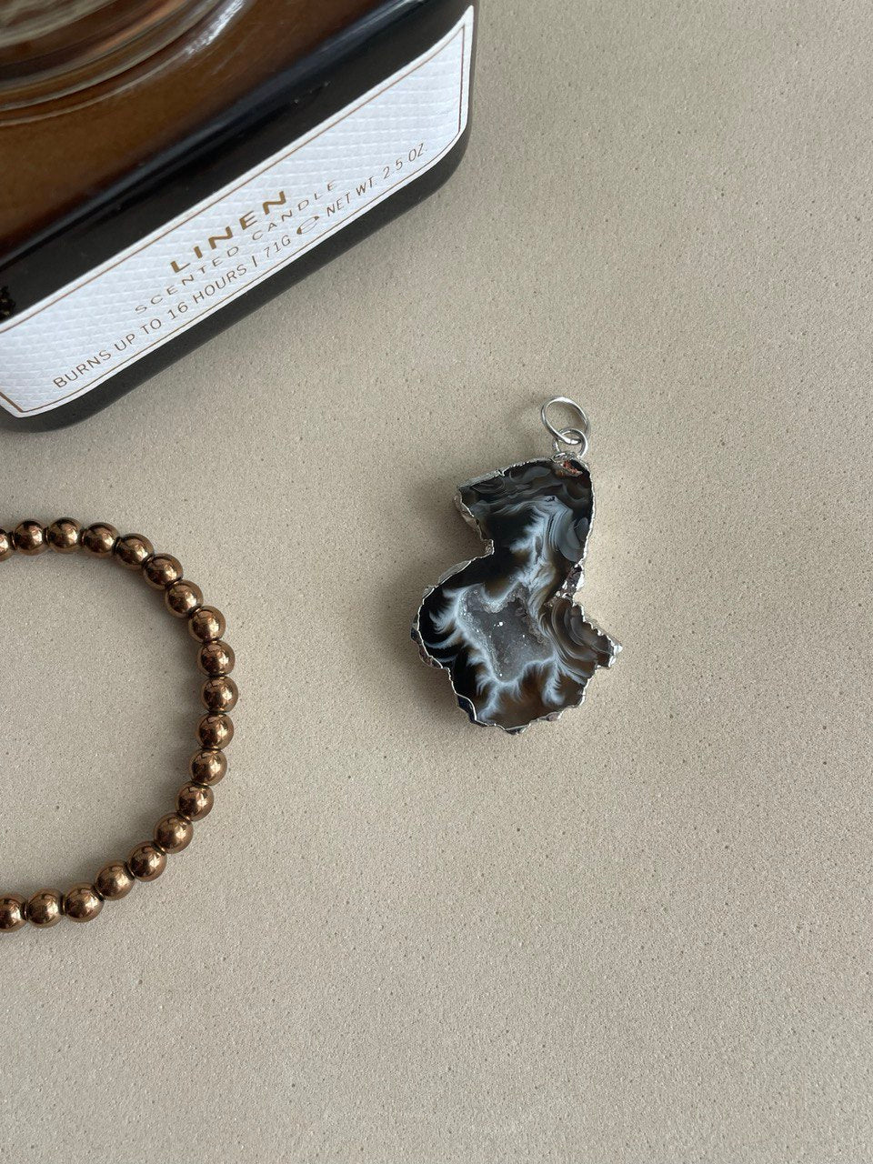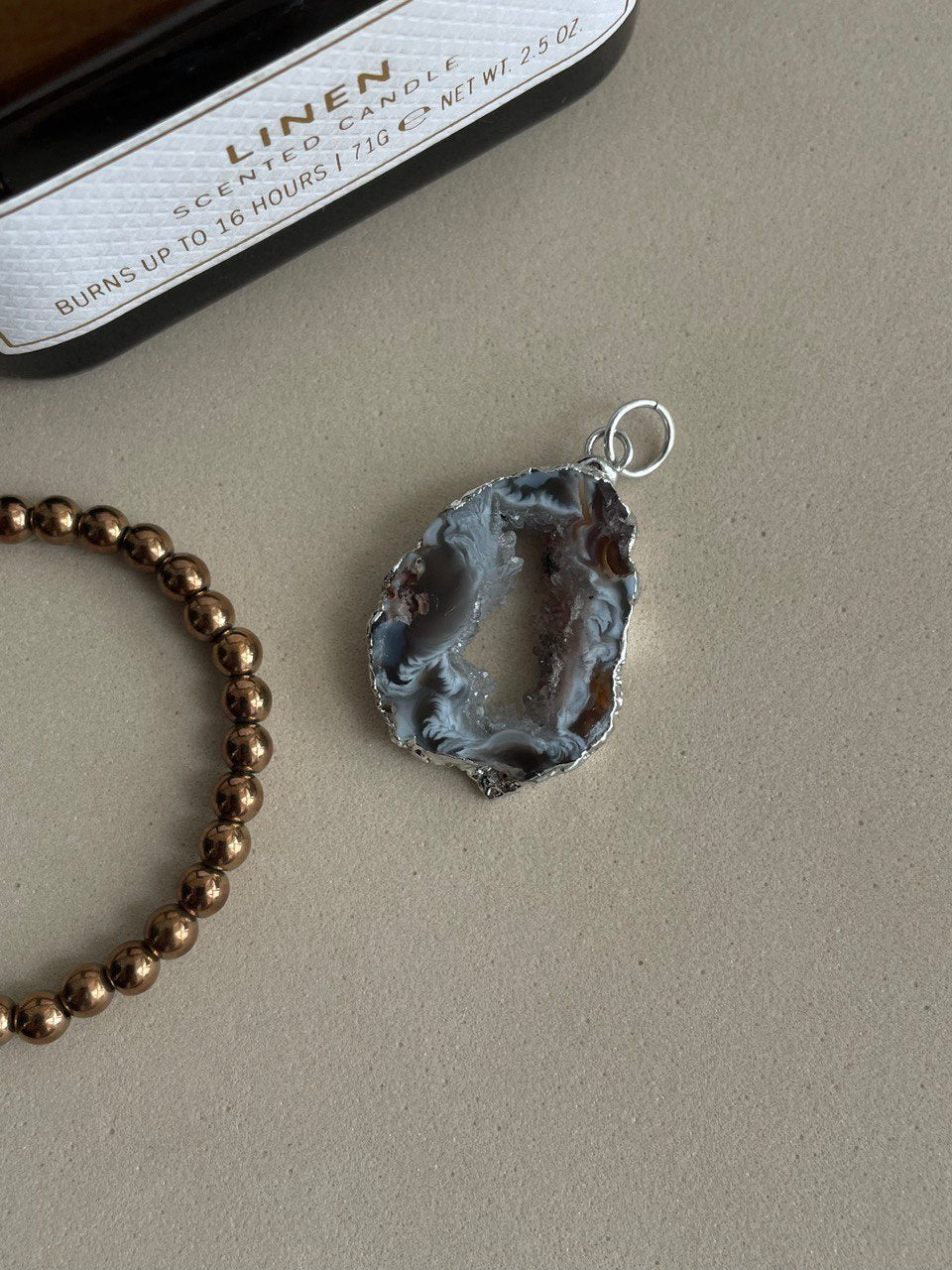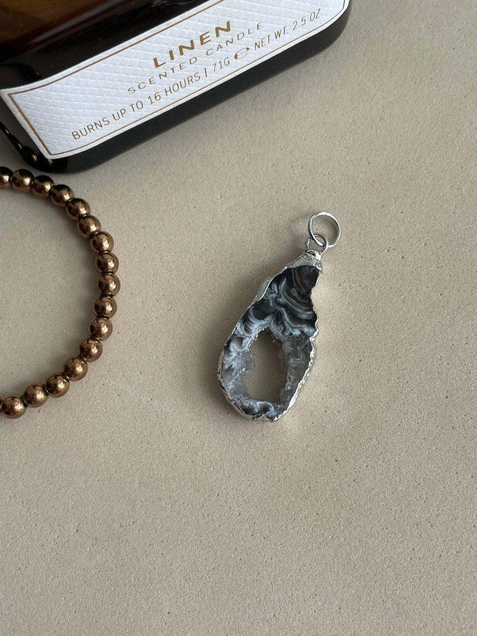 Подвеска в виде среза жеоды натурального агата.