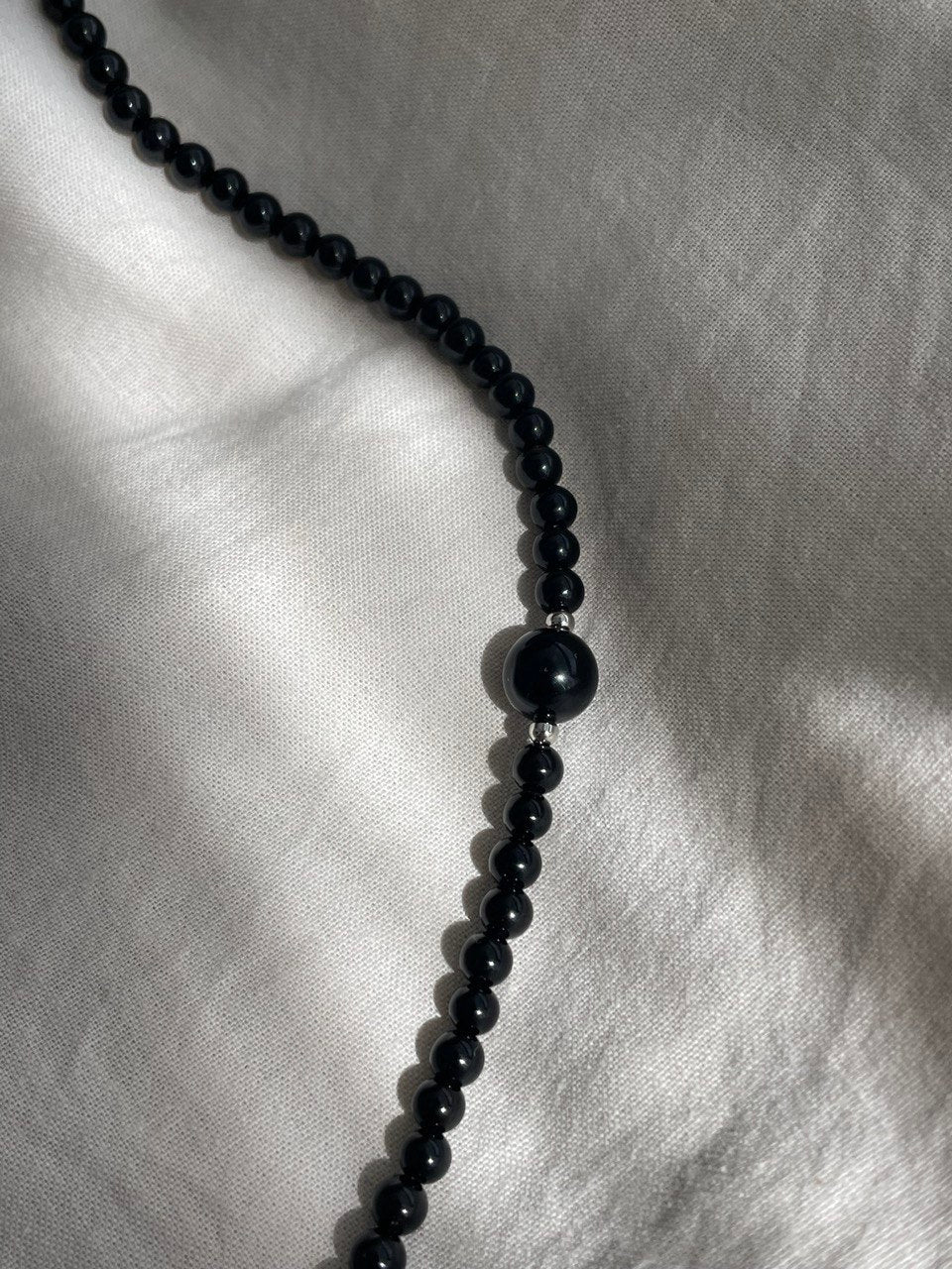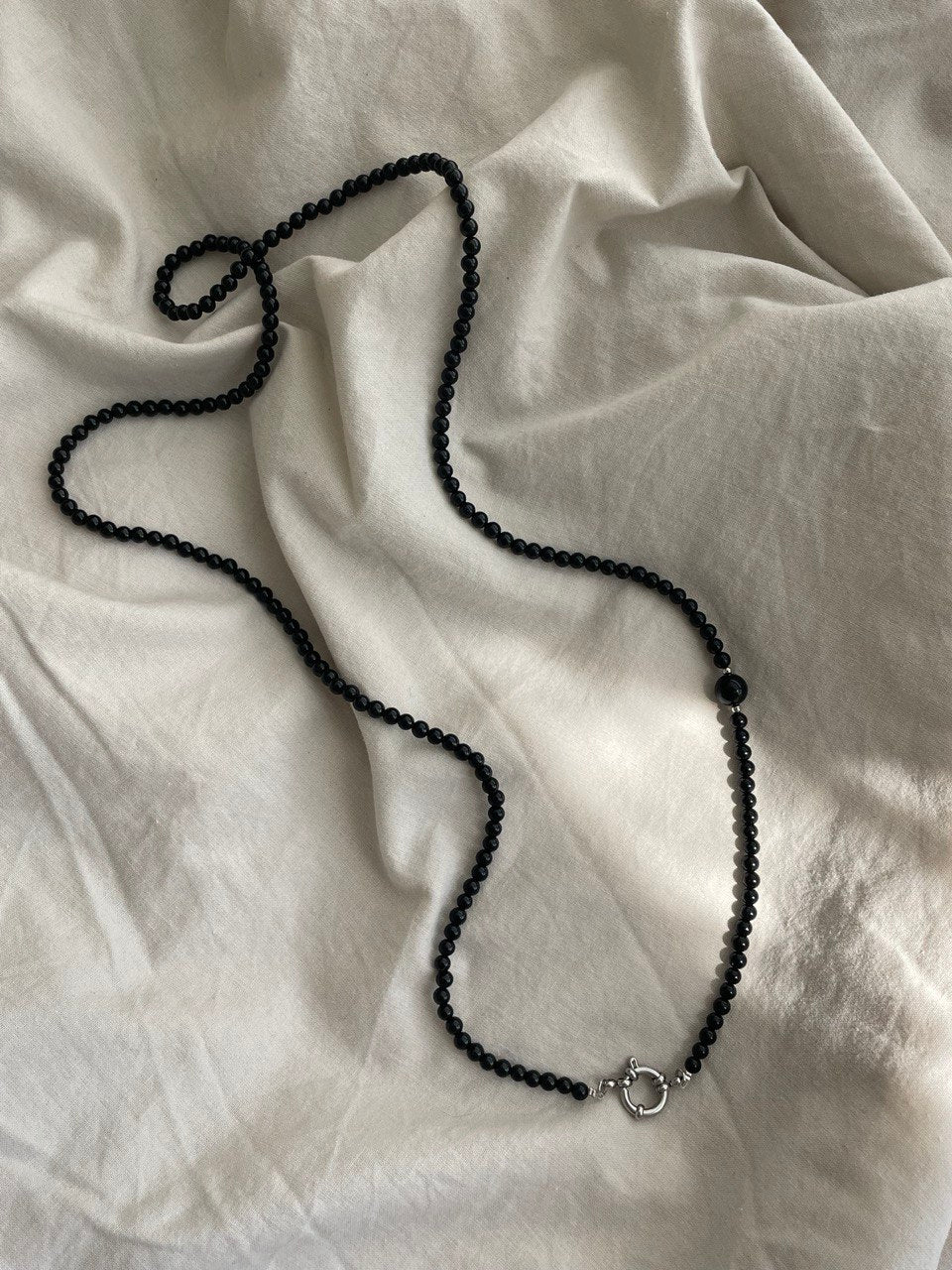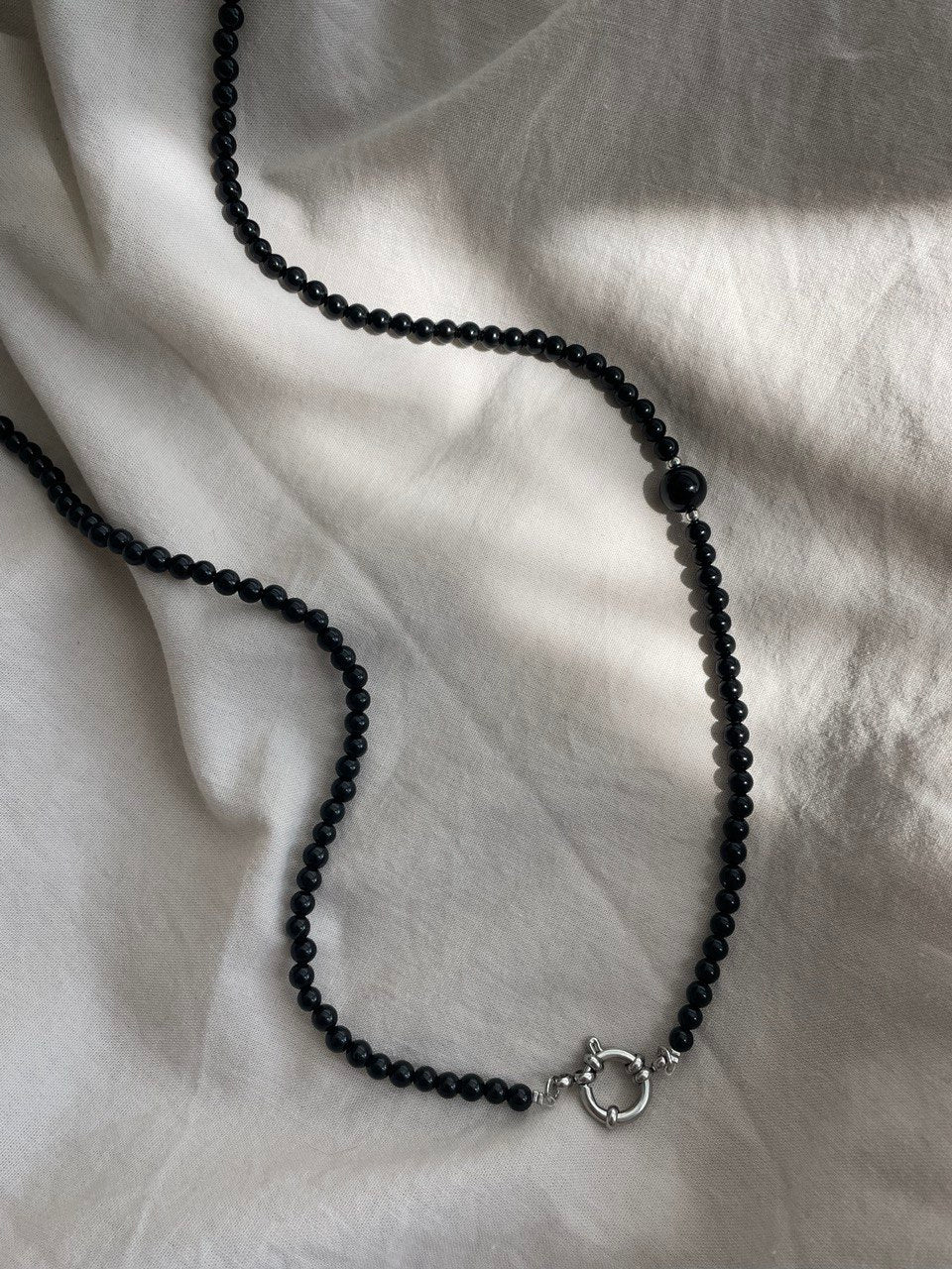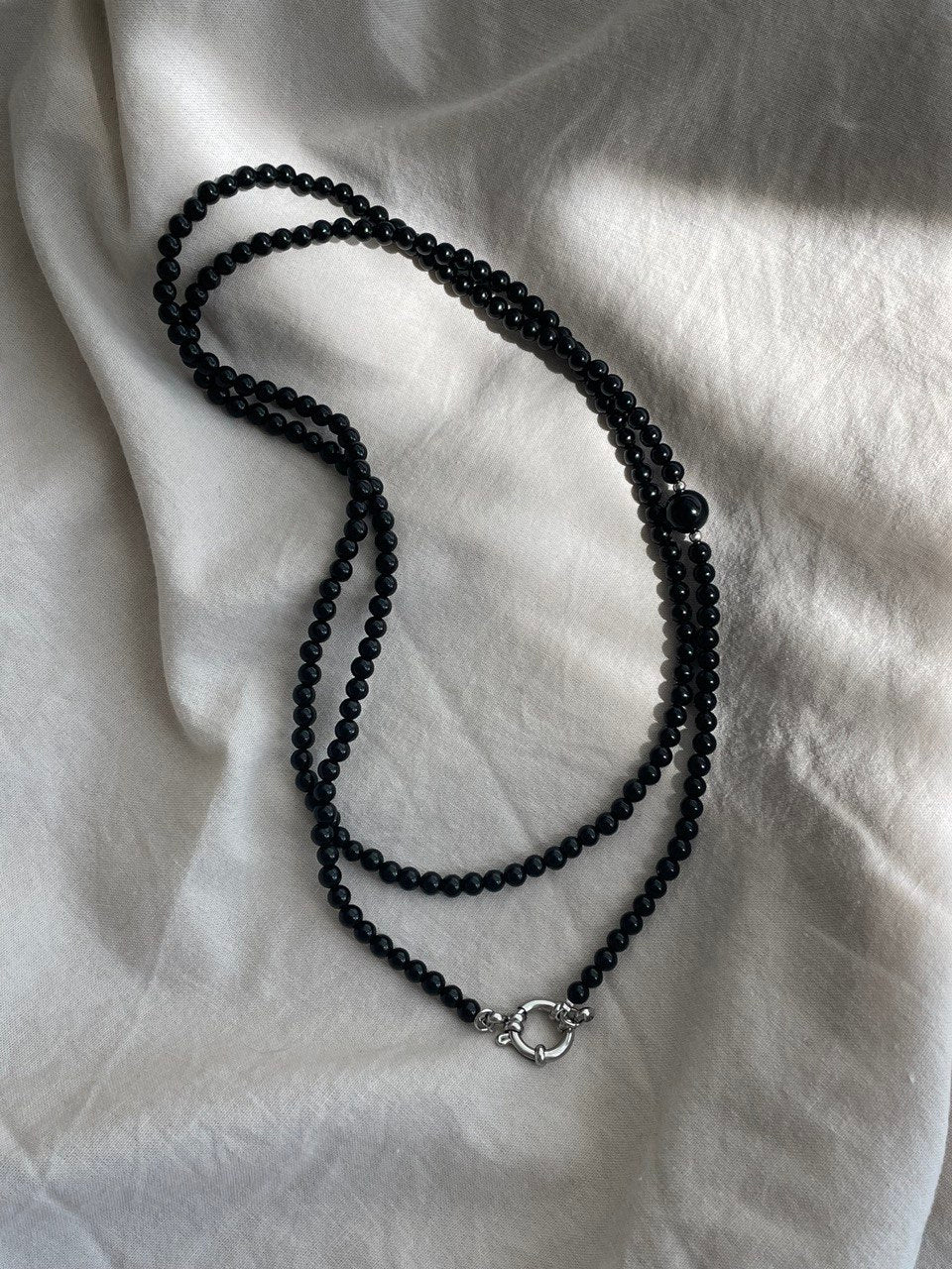 Длинное колье из черного агата. Можно носить в два оборота, а также дополнять различными подвесками. Ручная работа.