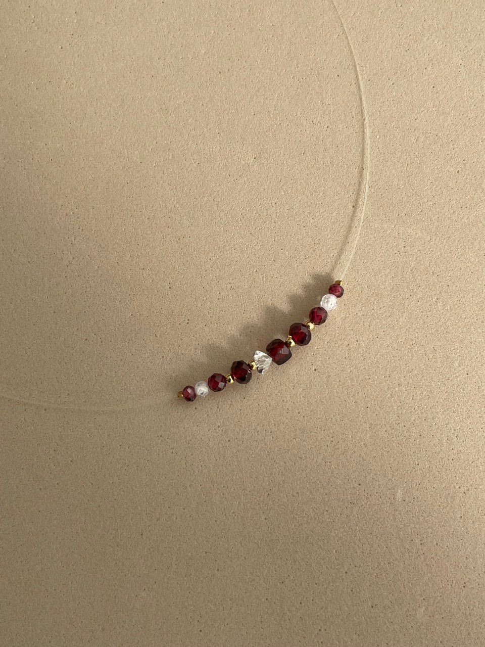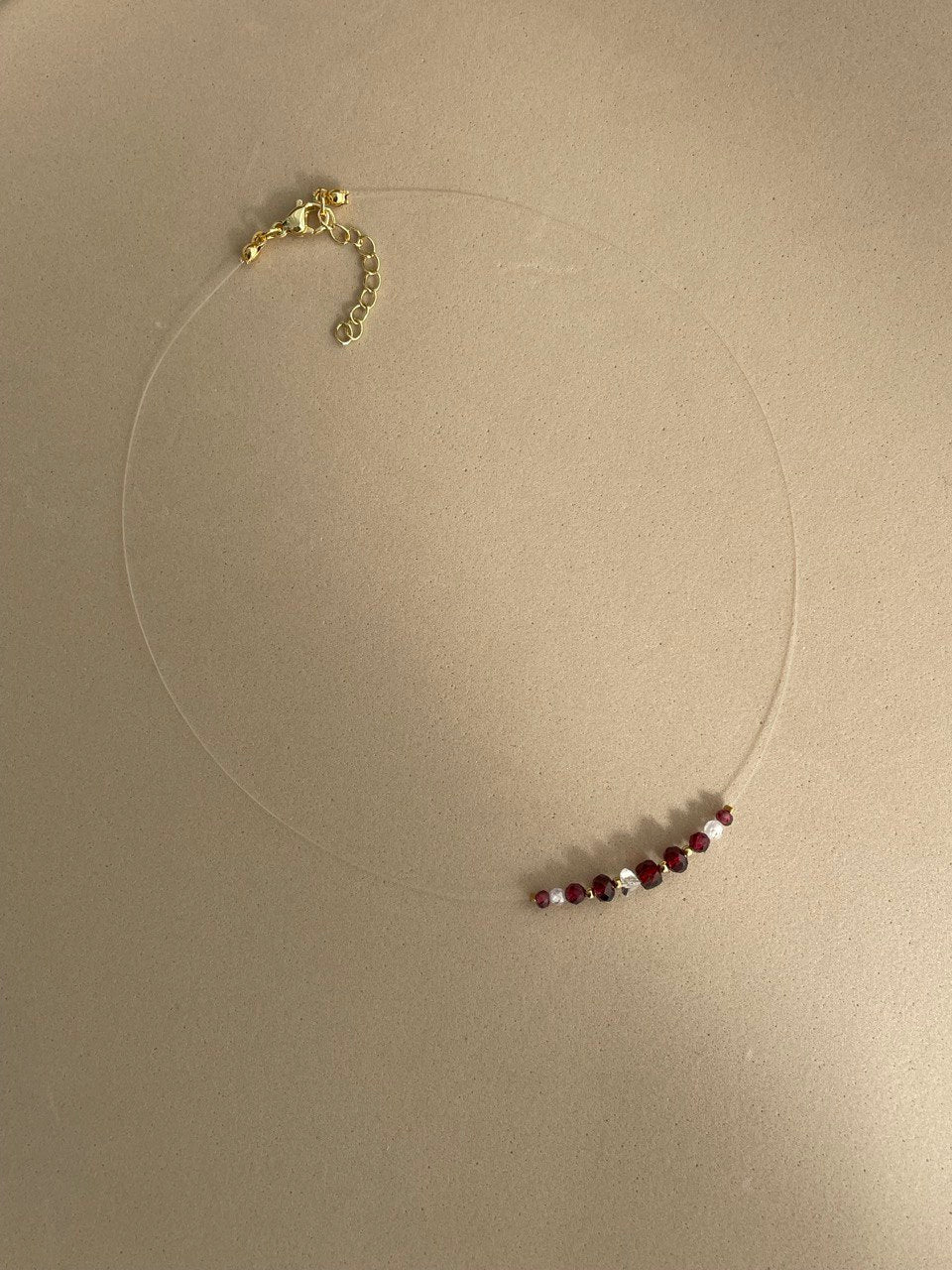 Колье на тонкой леске с гранатом. Ручная работа.