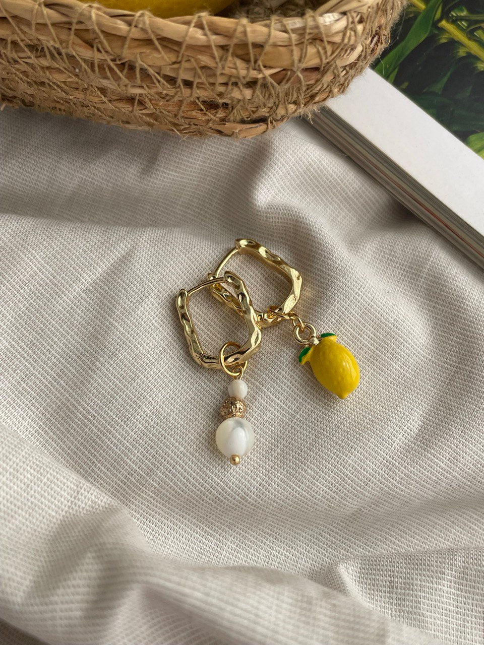 Серьги с перламутром и подвеской -лимоном. Подвески съёмные.