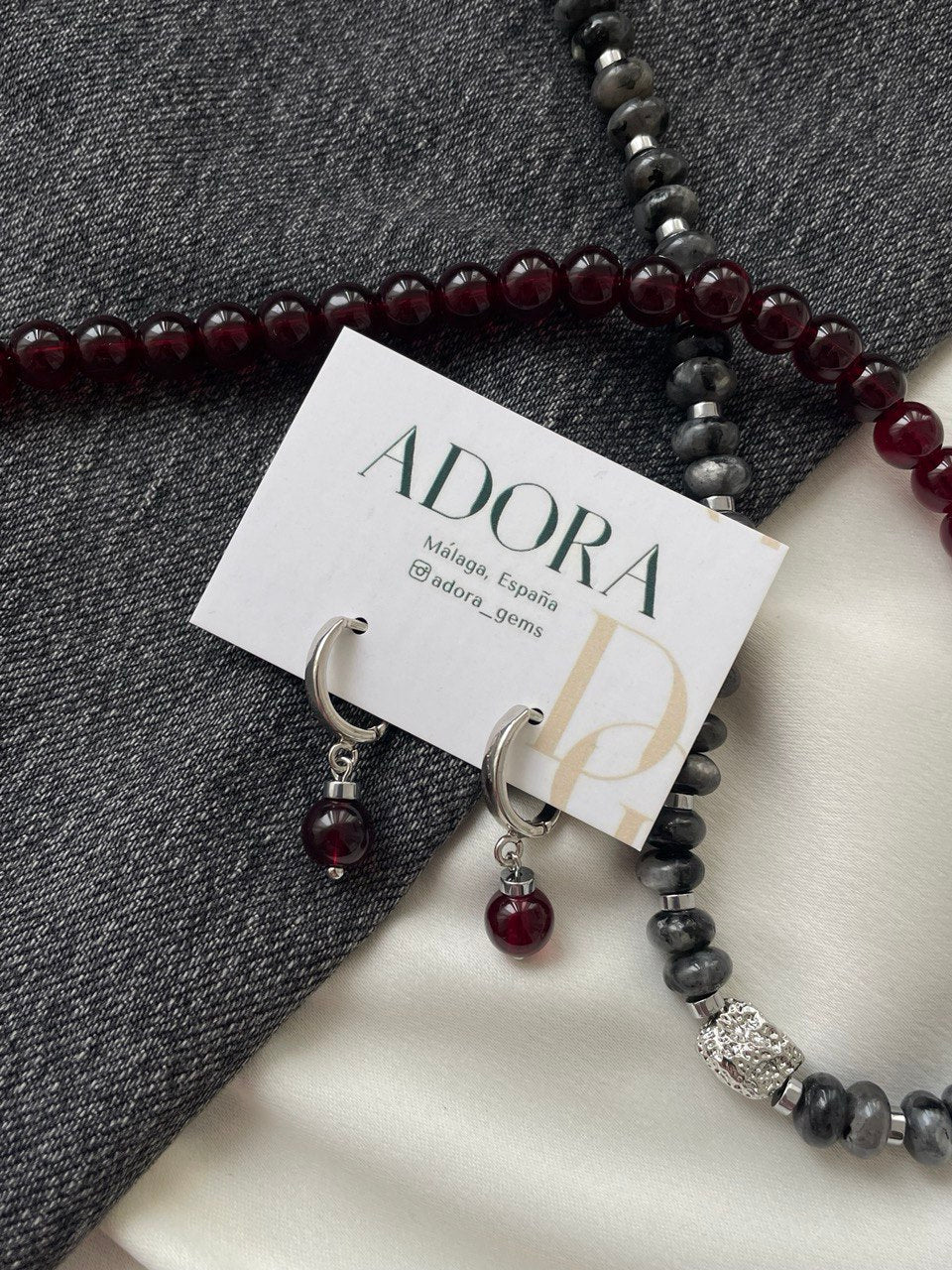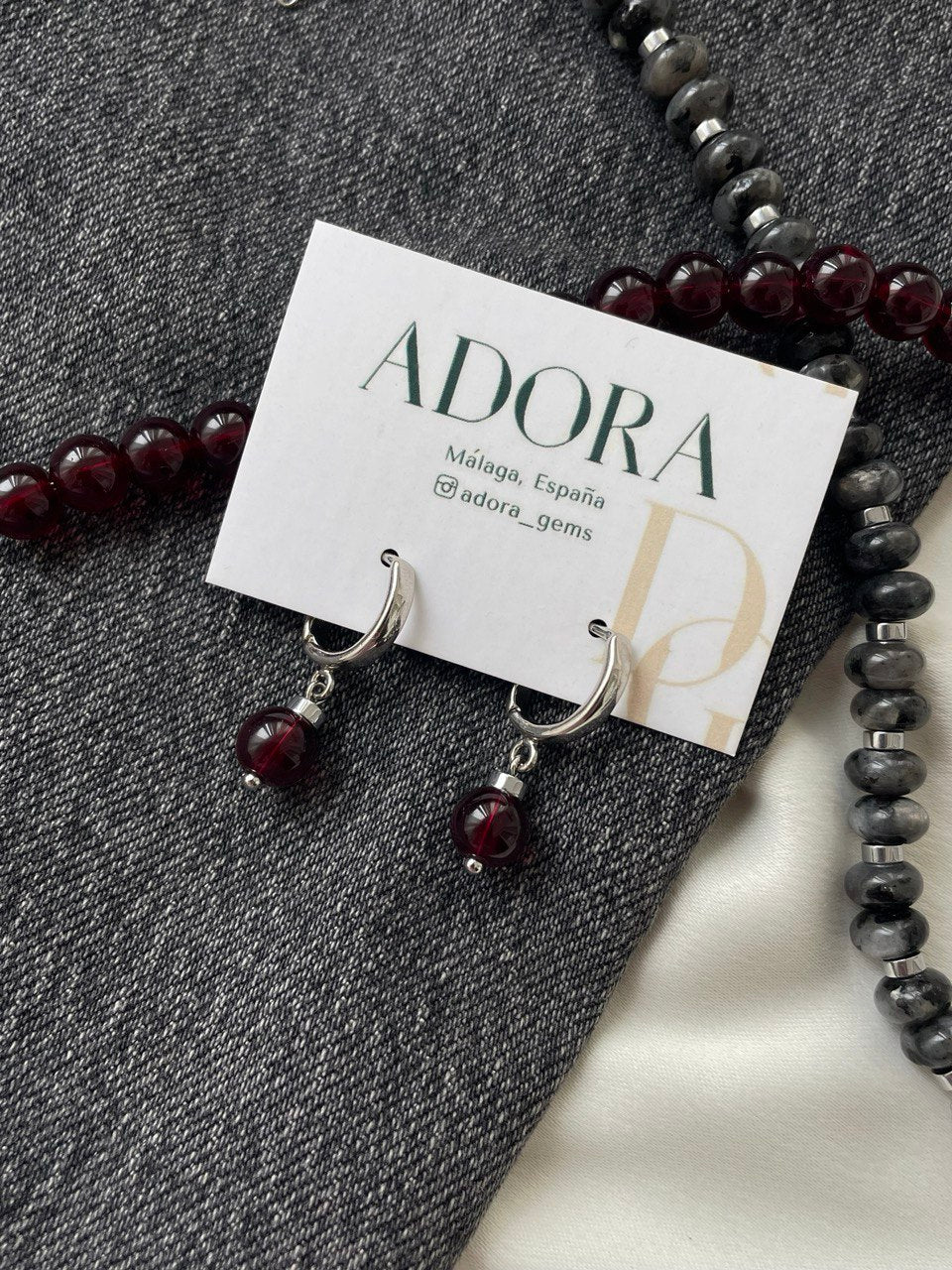 Серьги с кварцем бордового цвета