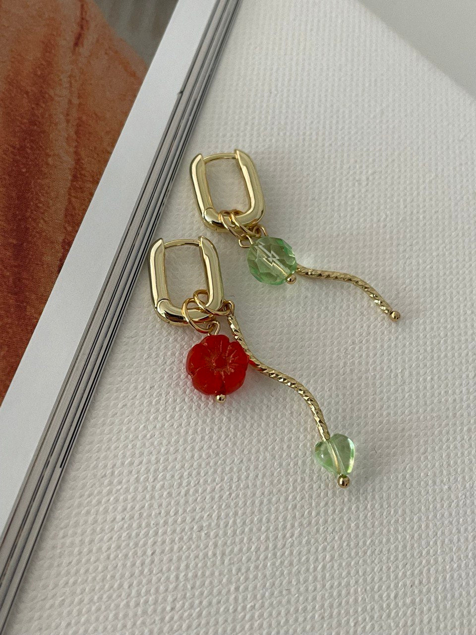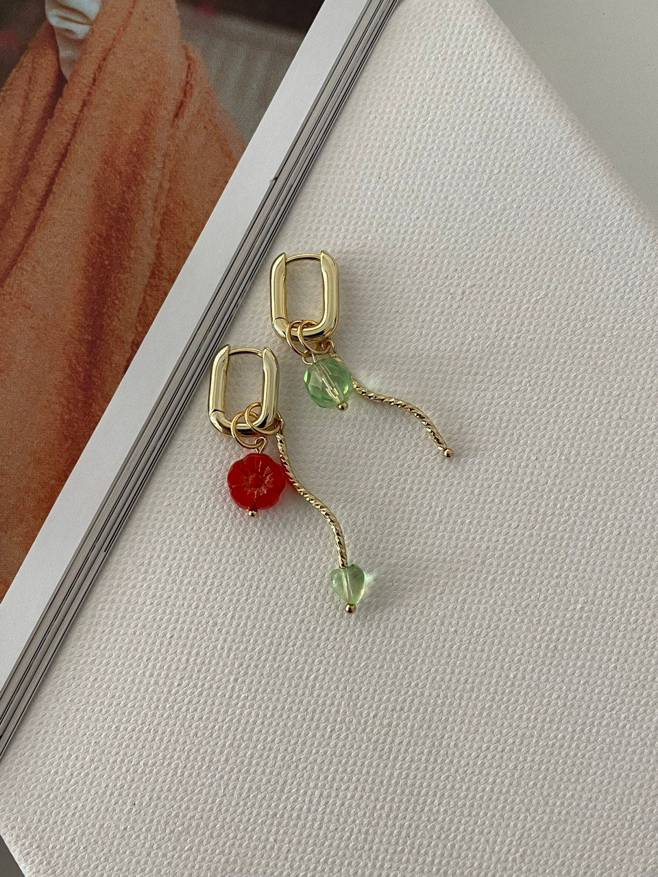 Серьги со съёмными подвесками, бусины из чешского стекла. Ручная работа.