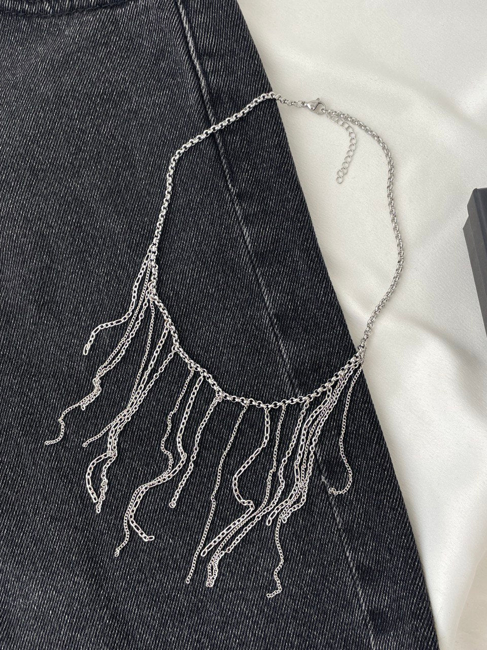 Роскошная цепочка - бахрома из тонких цепочек. Может использоваться как самостоятельное украшение или как дополнение к различным колье.
