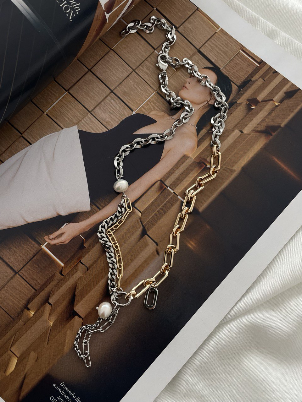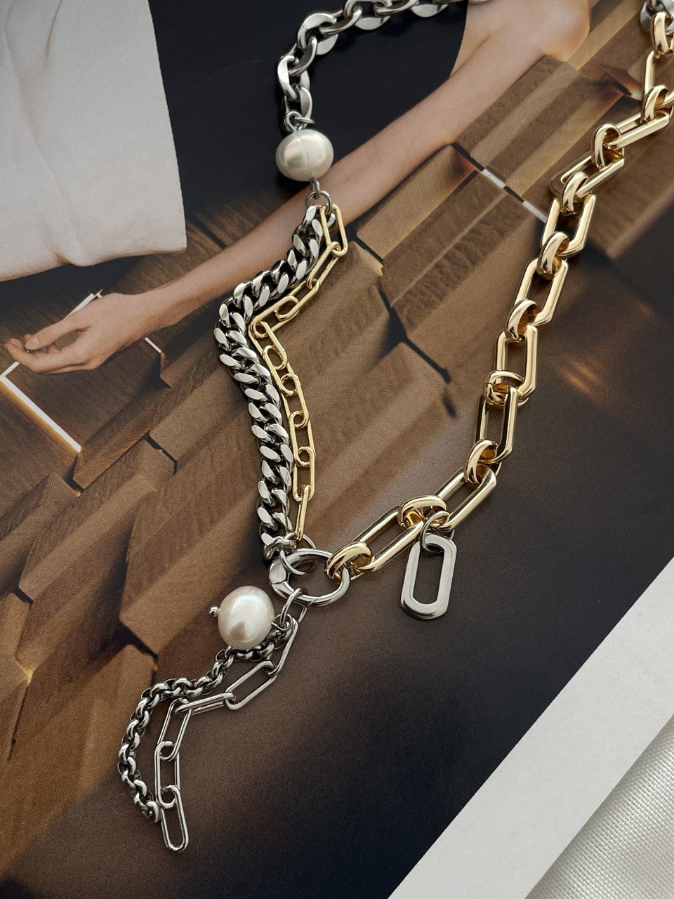 Цепочка биколорная с натуральным жемчугом. Съемная подвеска. Можно носить как цепочку на шее или как браслет на руке.